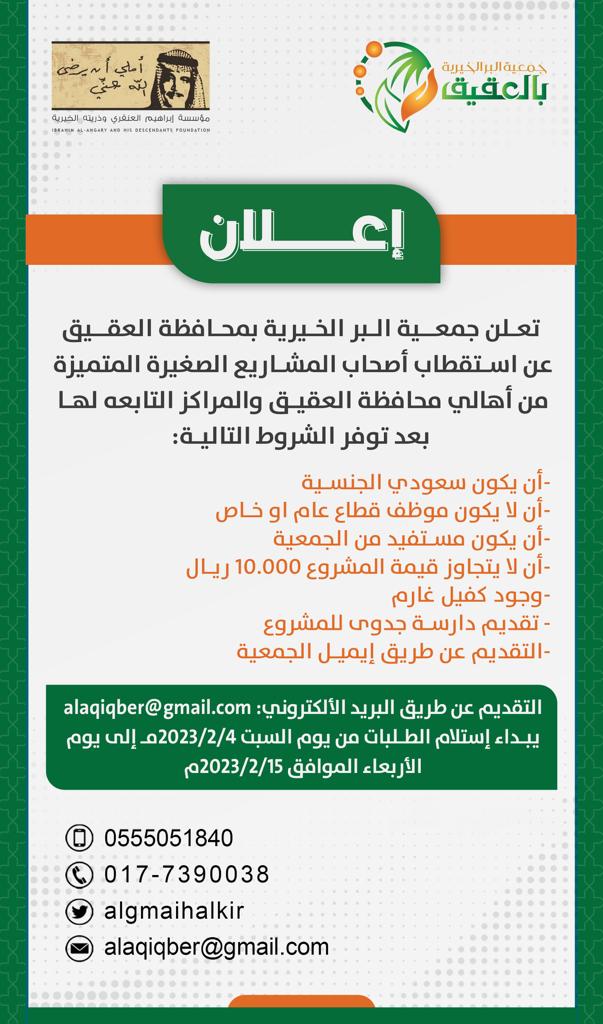 محفظة الاقراض ( قرض حسن ) لا اصحاب المشاريع الصغيره المتميزة التي لا يتجاوز قيمة مشروعها ١٠.٠٠٠ ريال